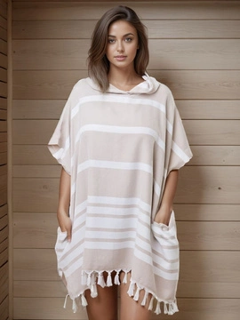 Poncho Hammam z kapturem do sauny S-0063 (1) beżowe