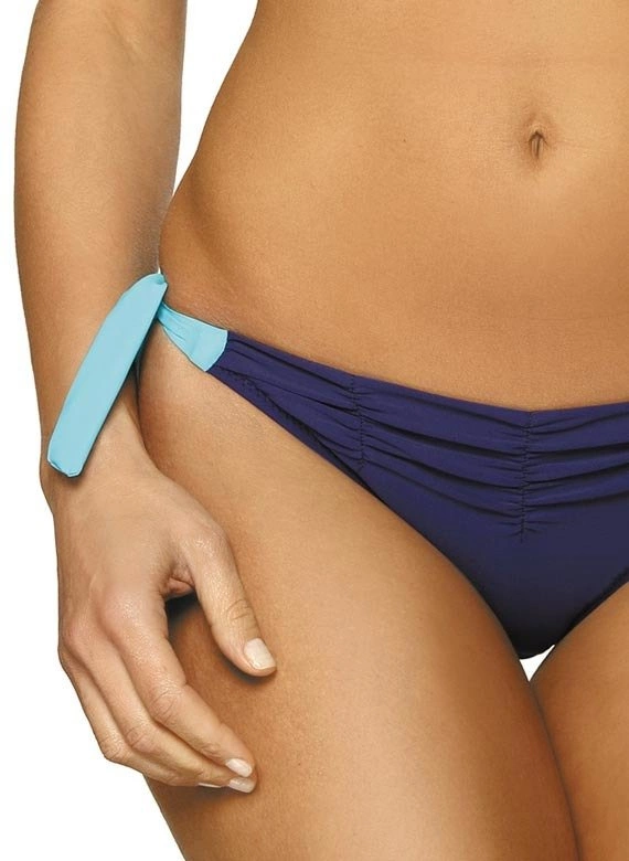 Wiązane po bokach figi granatowo-niebieską kolorystyka nawiązują do górnej części, tak że całość tworzy imponującą jedność, w której bardzo dobrze się zaprezentujesz. Strój został wykonany z włoskiej tkaniny Carvico, która zawiera 20% oryginalnej Lycry.