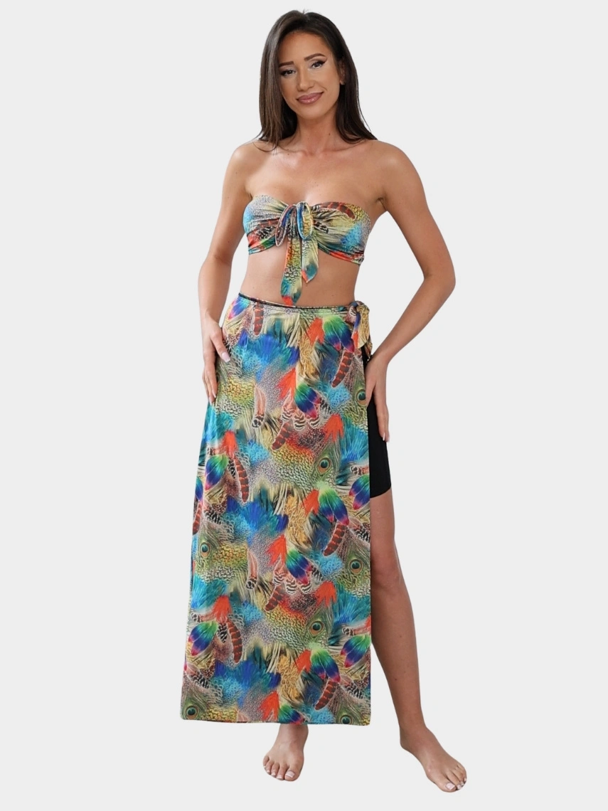 Lekka, przewiewna i szybkoschnąca tkanina sprawia, że Cameleo nosi się komfortowo w upale, a po kąpieli wysycha błyskawicznie. Uniwersalny rozmiar i starannie zaprojektowany krój ułatwiają dopasowanie do różnych sylwetek, a kompaktowa forma mieści się nawet w małej torebce. To niezbędny dodatek w każdej podróży – zarówno wtedy, gdy planujesz dalekie wakacje, jak i krótki weekend nad wodą. Dzięki uniwersalnemu rozmiarowi oraz kilku pięknym wzorom i kolorom (od klasycznej czerni, przez tropikalne palmy, aż po wielobarwne pawie pióra) dopasujesz je do swojego stylu i nastroju. Wybieraj spośród wyrazistych wzorów i klasycznych kolorów, łącząc Cameleo z kostiumem, topem lub bieliźnianą halką.