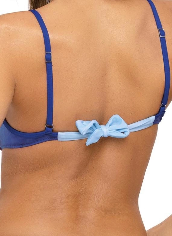 Do tego o bardzo dobrze przygotowanej konstrukcji - biustonosz usztywniono specjalną pianką, ładnie zbiera i modeluje piersi, posiada wzmacniające konstrukcję fiszbiny i push-up, który pozwala optycznie powiększyć biust i poprawić symetrię ciała (push-up bez możliwości wyjęcia z modelu, dostępny w każdym rozmiarze kostiumu). Obwód wiązany na plecach. Figi klasycznej i bardzo wygodne (jeśli poszukujesz nieco wyższego stanu majtek możesz zakupić drugi wariant kolorystyczny tego modelu: Marita Cosmo M-514 (1)). Wzorzysty przód uzupełnia gładki tył. Tkanina włoska, wysokiej jakości. Skład: 80% poliamid, 20% elastan.