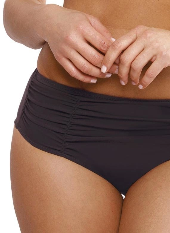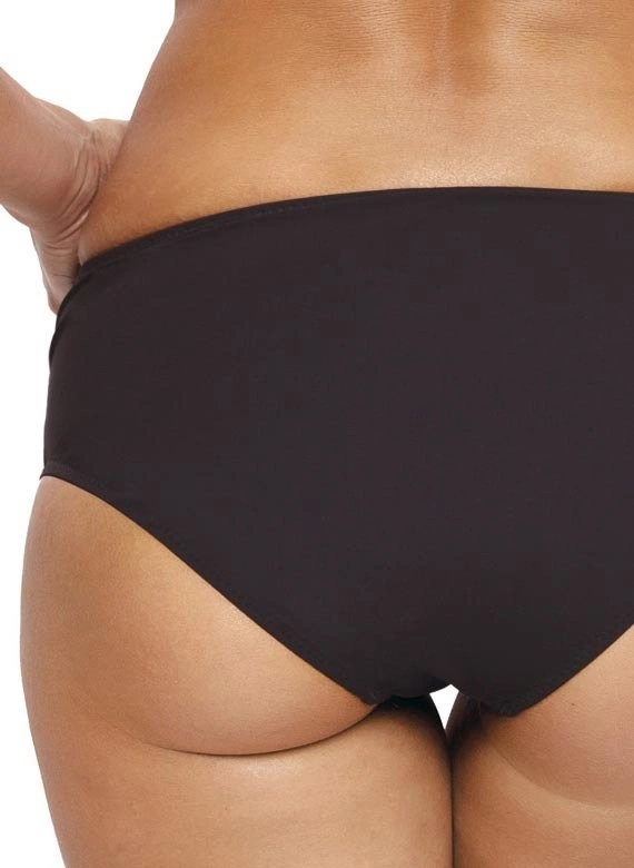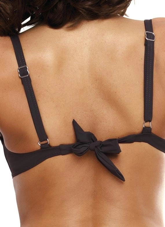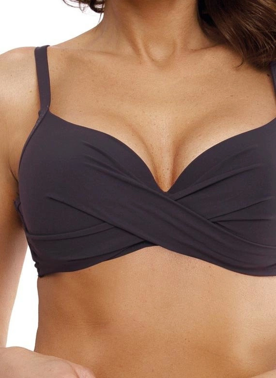 Wykonany z włoskiej, gładkiej, matowej tkaniny, najwyższej jakości. Utożsamia kobiecość i ponadczasowy styl. Biustonosz posiada dobrze wyprofilowane, usztywniane miseczki z fiszbinami, które wspaniale zbierają i modelują piersi. Fason ładnie zbiera, unosi i utrzymuje biust w atrakcyjnej pozycji. Dodatkowo rozmiary 40/C i 42/D posiadają wypełnienie push-up, które umieszczono w biustonoszu na stałe, bez możliwości jego wyjęcia, a które przy mniejszych rozmiarach kostiumu pozwala nieco powiększyć piersi i tym samym poprawić proporcje ciała. Pozostałe rozmiary nie posiadają push-up-a. Obwód wygodnie wiązany na plecach. Figi wyższe niż zazwyczaj, delikatnie kryją większą partię ciała niż w tradycyjnych, niskich figach, są subtelnie marszczone z przodu i bardzo wygodne. Kolekcja Lato 2019. Skład: 80% poliamid, 20% elastan.
