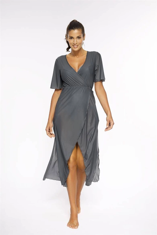 Urok tuniki Hilda tkwi w prostocie, która zawsze jest elegancka! To długie, zwiewne okrycie plażowe dostępne w wielu modnych, pastelowych barwach świetnie skomponuje się z wieloma kostiumami, dlatego wśród różnych wariantów kolorystycznych na pewno znajdziesz coś dla siebie. Uwodzicielsko skrojony dekolt Hildy układa się w lekki serek dzięki warstwom materiału tworzącym zmysłową zakładkę. Najwyżej klasy włoska tkanina Carvico Tessuti zapewni Twojej skórze przyjemny, chłodny dotyk (składa się w 80% z dobrej jakości poliamidu). Dzięki niewielkiej domieszce elastanu tunika jest delikatnie rozciągliwa i pięknie układa się na ciele, zwłaszcza w ruchu.